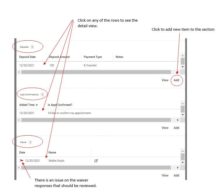 As you scroll down through the appointment you will see the Deposit, Confirmation and Waiver sections (if applicable).